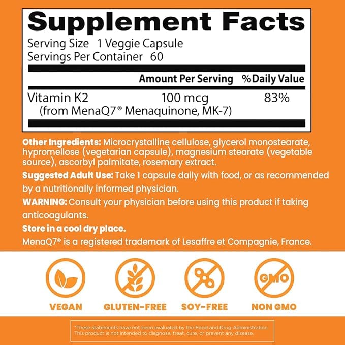 Doctor’s Best Vitamins | Vitamin K2 / MK7 (60 x 100mcg Capsules) | 60 x 100mcg Capsules