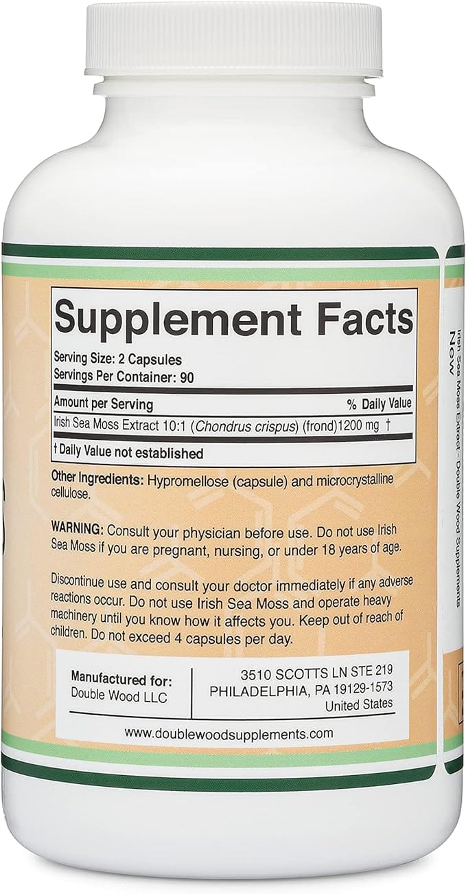 Double Wood Supplements | Irish Moss Extract | 180 x 600mg Capsules