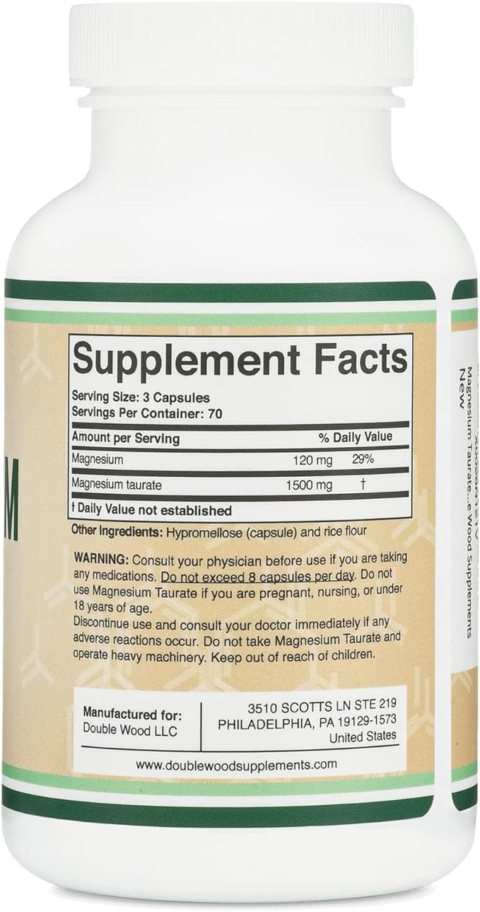 Double Wood Supplements | Magnesium Taurate | 210 x 540mg Capsules