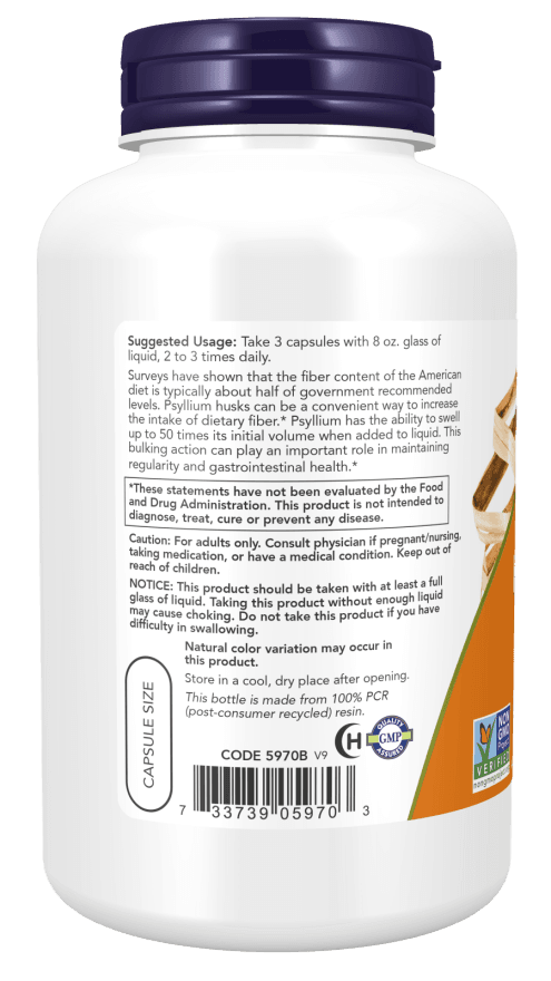 Now Foods | Psyllium Husk Capsules (200 x 500mg) | 200 x 500mg Capsules