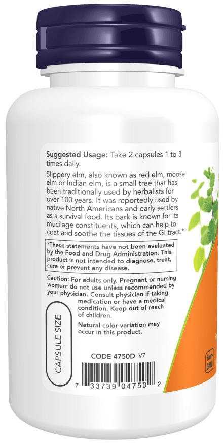 Now Foods | Slippery Elm (100 x 400mg Capsules) | 100 x 400mg Capsules